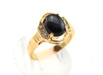 Кольцо с агатом, овал, циркон сбоку, украшение из ювелирного сплава с нанесённым гальваническим методом золотым покрытием толщиной 1 микрон со вставками из агата