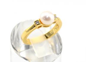 Кольцо с жемчугом, шарик+2 циркона , украшение из ювелирного сплава с нанесённым гальваническим методом золотым покрытием толщиной 1 микрон со вставками из жемчуга