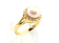 Кольцо с жемчугом, жемчуг в цирконах, украшение из ювелирного сплава с нанесённым гальваническим методом золотым покрытием толщиной 1 микрон со вставками из жемчуга