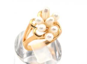 Кольцо с жемчугом, 7 жемчужин, украшение из ювелирного сплава с нанесённым гальваническим методом золотым покрытием толщиной 1 микрон со вставками из жемчуга