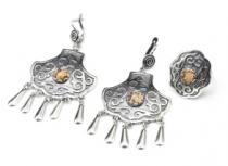 •Габарит кольца 24*29мм, серьги: 39*37мм., вес 31,1 г.