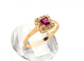 Украшение из ювелирного сплава с нанесённым гальваническим методом золотым покрытием толщиной 1 микрон со вставками из рубинового циркона