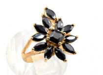 Кольцо позолоченное "Ромашка" с чёрным цирконом, размер 20