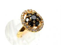 Кольцо позолоченное "Екатерина" с чёрным цирконом и белым, размер 17