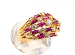 Украшение из ювелирного сплава с нанесённым гальваническим методом золотым покрытием толщиной 1 микрон со вставками из рубинового циркона