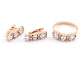 Кольцо и Серьги с925 с покрытием з999 и фианитами 6*18мм размер 19,5, 8,6гр