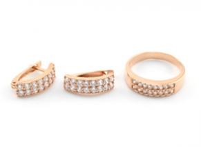 Кольцо и Серьги с925 с покрытием з999 и фианитами 6*18мм размер 18,5, 6,6гр