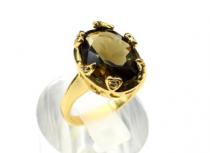 Кольцо с позолотой раухтопаз гранённый и стразы, размер 18