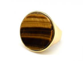 Кольцо позолоченное "Круг" с тигровым глазом, размер 18