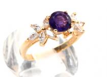 Кольцо c аметистом, 2 снежинки, украшение из ювелирного сплава с нанесённым гальваническим методом золотым покрытием толщиной 1 микрон со вставками из аметиста