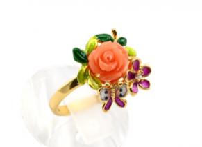 Украшение из ювелирного сплава с нанесённым гальваническим методом золотым покрытием толщиной 1 микрон со вставками из эмали и кравтовой смолы.