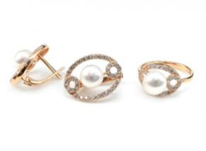 Кольцо и Серьги с925 с покрытием з999 и жемчугом 15*20мм размер 18, 6гр.