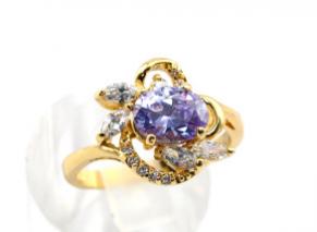 Кольцо циркон сиреневый 4 стразы+циркон Размер 16