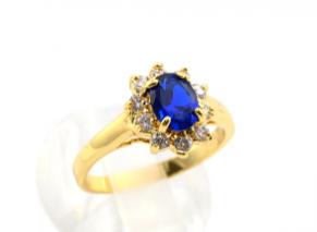 Кольцо циркон синий малый овал в цирконах Размер 16