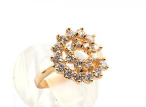 Кольцо с хрусталём, украшение из ювелирного сплава с нанесённым гальваническим методом золотым покрытием толщиной 1 микрон со вставками из хрусталя