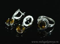 Кольцо Серьги с цирконом искусственным, цв.топаз размер 21