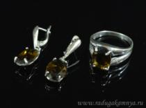 Кольцо Серьги с цирконом искусственным, цв.топаз размер 21