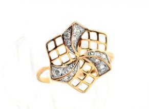 Кольцо с925 с покрытием з999 и фианитами 14*15мм размер 16, 1,4гр.