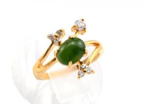 украшение из ювелирного сплава с нанесённым гальваническим методом золотым покрытием толщиной 1 микрон со вставками из нефрита
