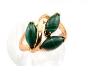 Кольцо c малахитом, украшение из ювелирного сплава с нанесённым гальваническим методом золотым покрытием толщиной 1 микрон со вставками из малахита, размер 16-19