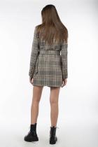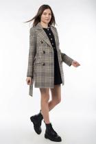 представлена в сдержанной, элегантной цветовой гамме в клетку, которая станет прекрасной основой любого образа, а оригинальная пряжка пояса придаст ему изюминку. Еще одним важным достоинством модели является то, что твид не только отлично согревает в холода, но и весьма хорошо сохраняет форму. Модель "