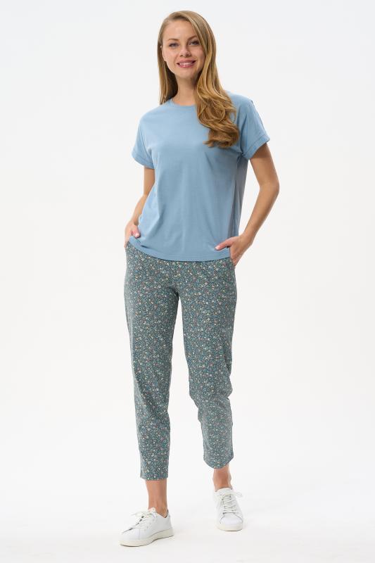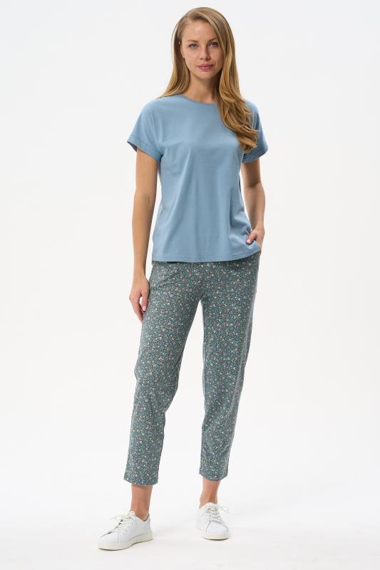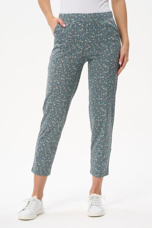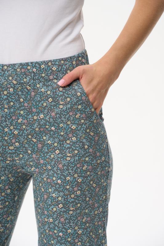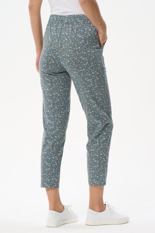Универсальные брюки длиной 78 из хлопкового полотна. Пояс с эластичной лентой, два фигурных боковых кармана. Длина по боковому шву (без учета пояса) в 44 размере 87см. Рост модели на фото 178 см