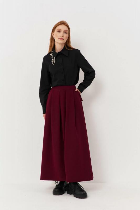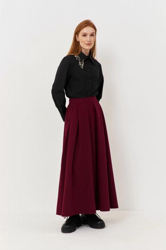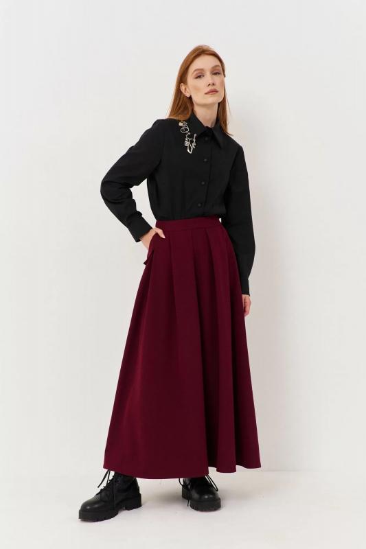 Юбка свободного силуэта из плательной ткани с складками FLAIM 1117.01 марсала