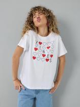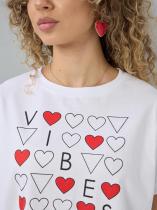 Женская футболка F5, Oversize fit (свободный силуэт), круглый вырез горловины, короткий цельнокроеный рукав. Выполнена из классического трикотажного полотна.
