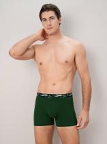Классические мужские боксеры темно-зеленого цвета, выполненные из натурального хлопка. Модель оснащена удобной широкой резинкой с камуфляжным принтом, которая обеспечивает надежную фиксацию без дискомфорта.