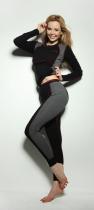 материал: 50% хлопок, 45% полиэстер, 5% лайкра | цвет - черный с серой вставкой. Это - гибридное термобельё, то есть оно сочетает в себе свойства теплосберегающего и влаговыводящего. Специальная пропитка способна подавлять рост бактерий на коже.