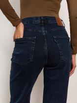 Женские ретро джинсы с пятью карманами с использованием лучших традиций 90-х. Посадка Сomfort fit ( свободные по бедру). Супервысокая талия спереди и сзади, свободные и широкие по всей длине.на правом заднем кармане вышивка. Застежка на молнии. Выполнены из слабоэластичной ткани denim comfort stretch,цвет ткани Blue-Black(лицевая сторона ткани темно-синяя, изнаночная сторона- черная). Темная стирка с камнями (stone wash). Рекомендации по уходу Стирать в стиральной машине при температуре 30°