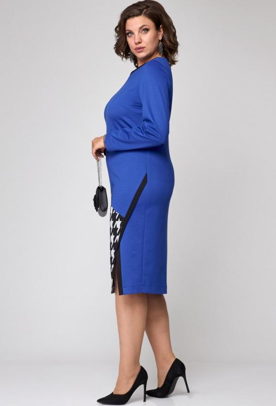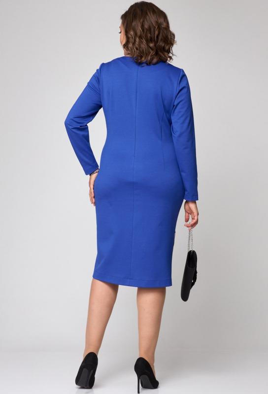 Платье женское нарядно-повседневное прилегающего силуэта, выполнено из трикотажного полотна разных дизайнов. Вырез горловины фигурный, обработан обтачками из отделочной ткани, рукав втачной, по полочке обработан разрез обработанный обтачками из отделочной ткани. Спинка с центральным швом и потайной застежкой молнией. Декором служит подрез по полочке и обтачки из отделочной ткани.. Длина платья в 52р - 107см, длина рукава - 61см.. .