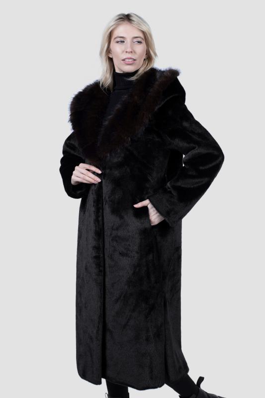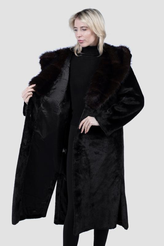 Воротник темно-коричневый На модели размер 46 Параметры модели: Рост 178 см., ОГ-ОТ-ОБ, 82-61-91 см.
