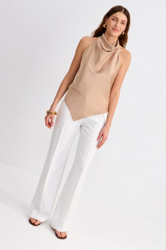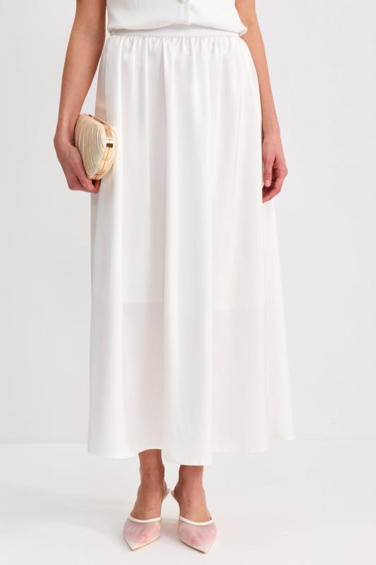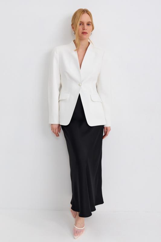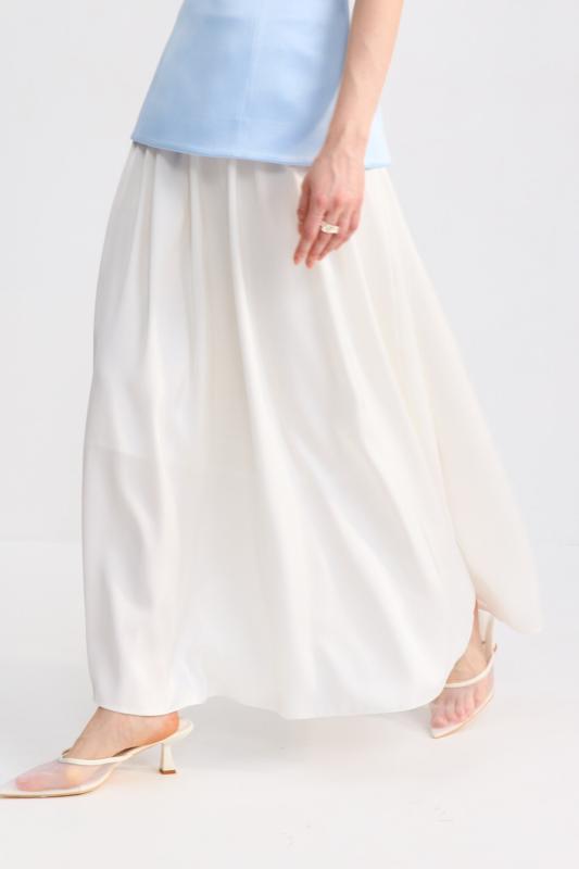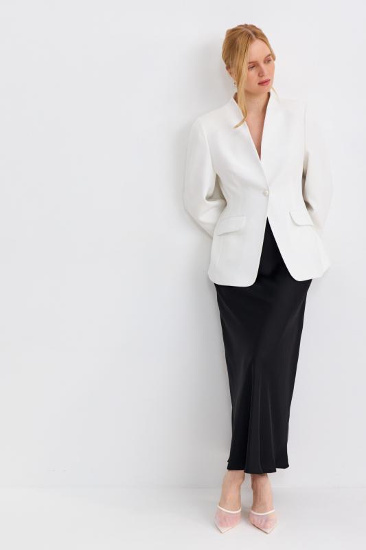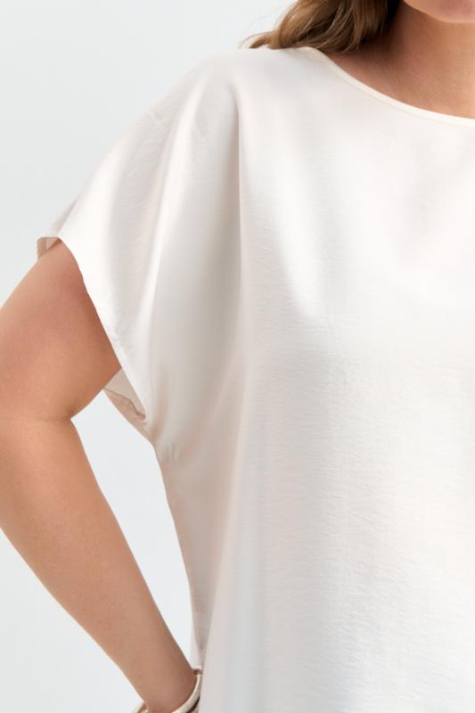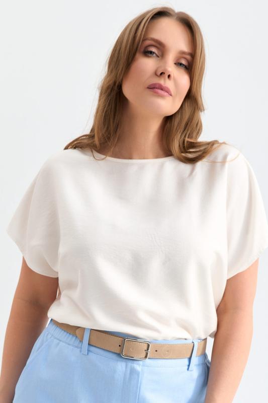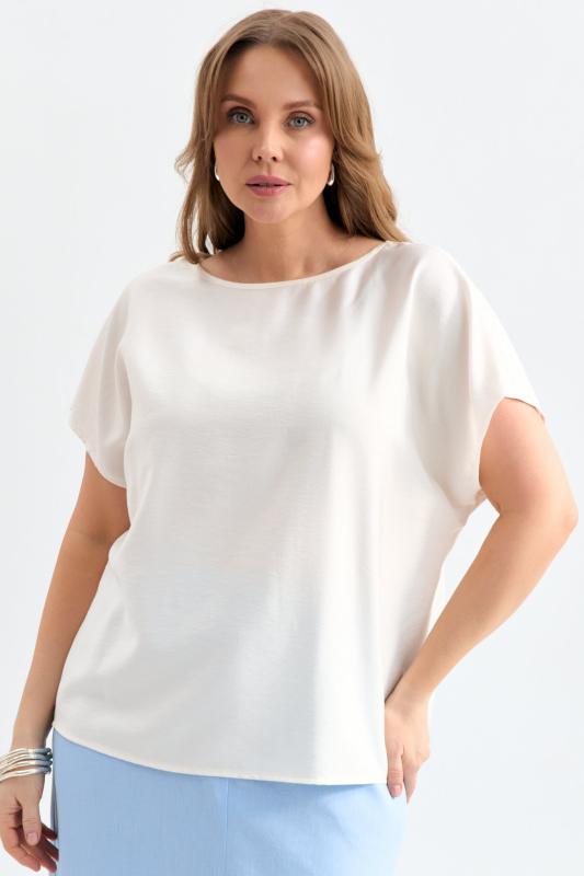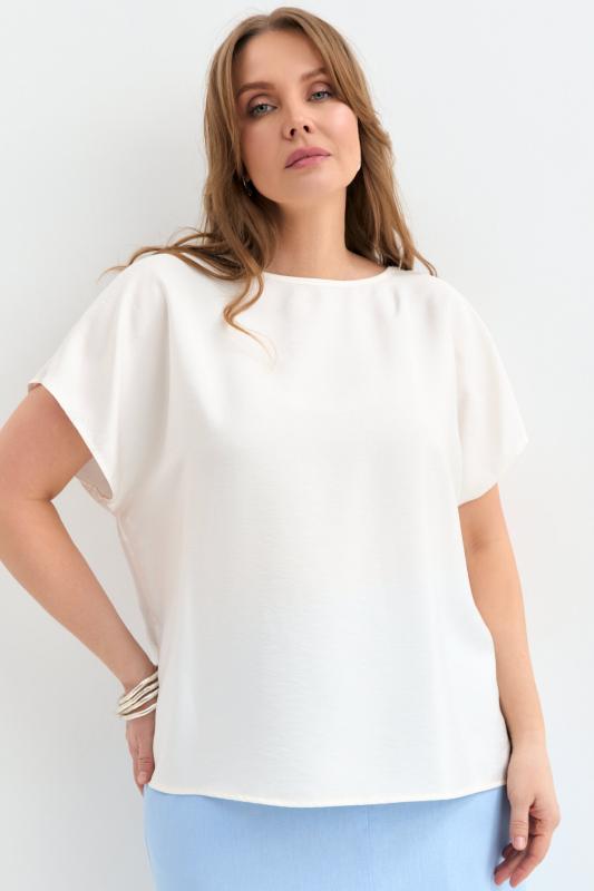 Блуза из лиоцелла в молочном оттенке. Модель прямого силуэта с цельнокроенным рукавом. Низ ровный.