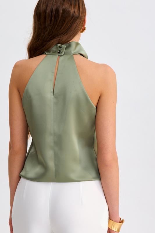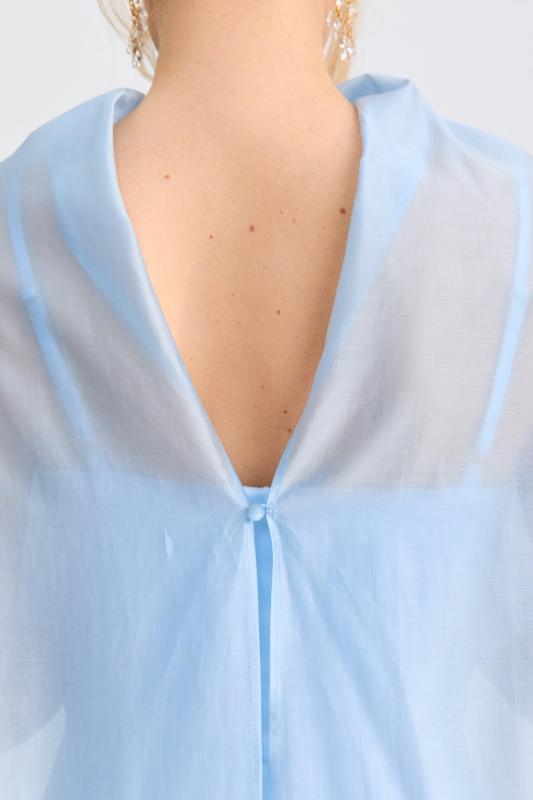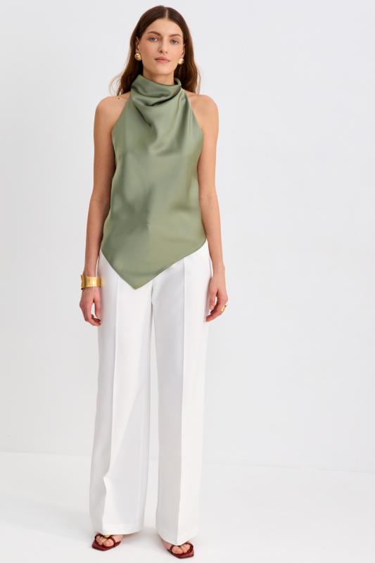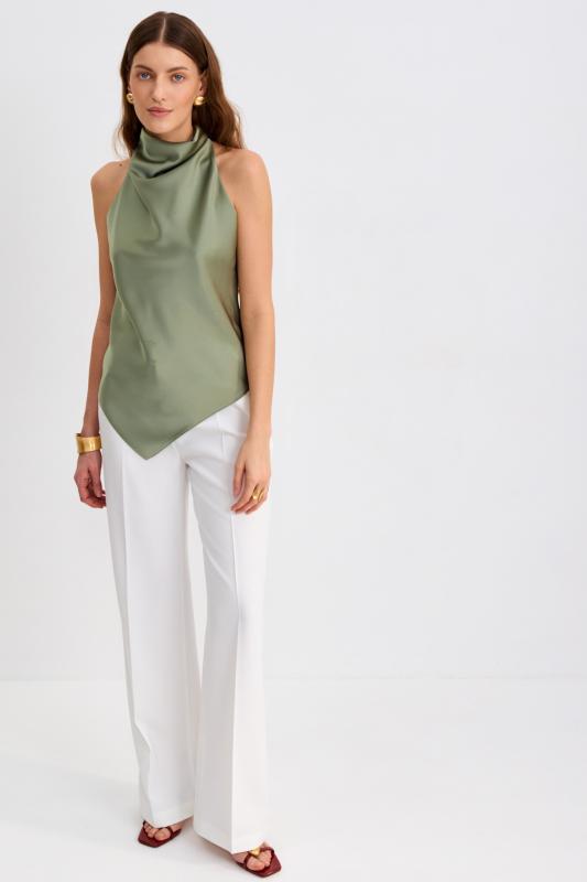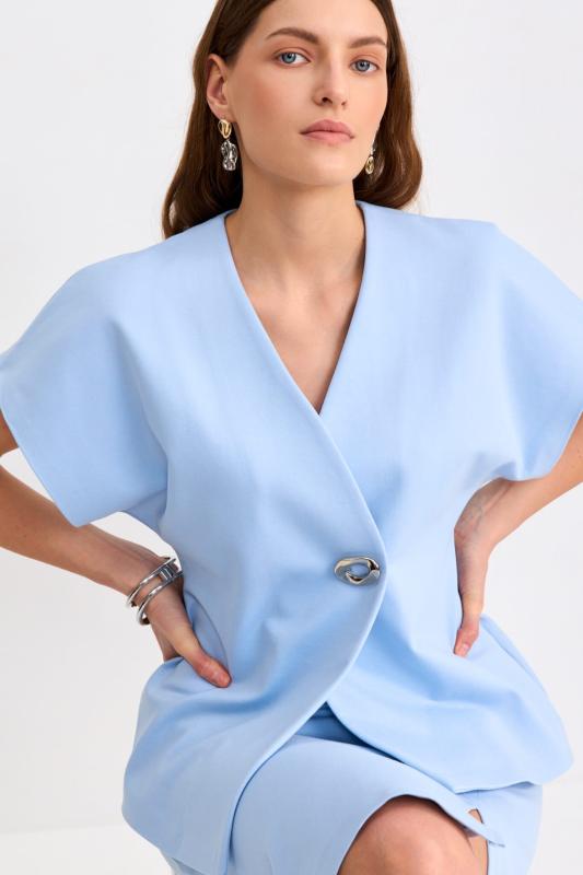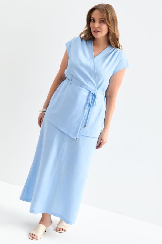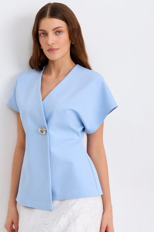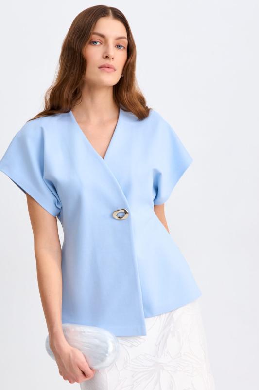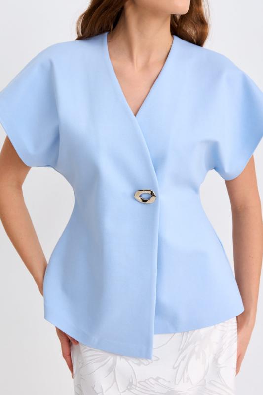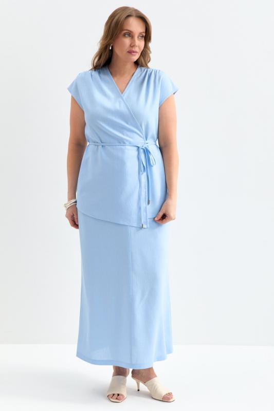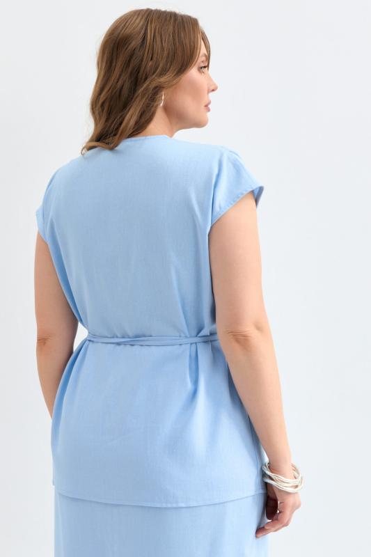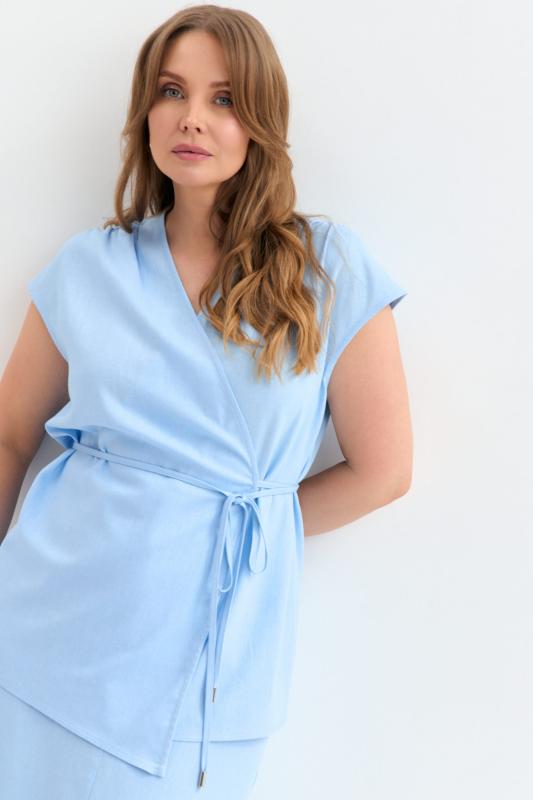 Блуза из льняного полотна с ассиметричным низом. Модель на запах, с фиксацией на тонкий пояс. Верхний борт с асимметрией для создания выразительного силуэта.
