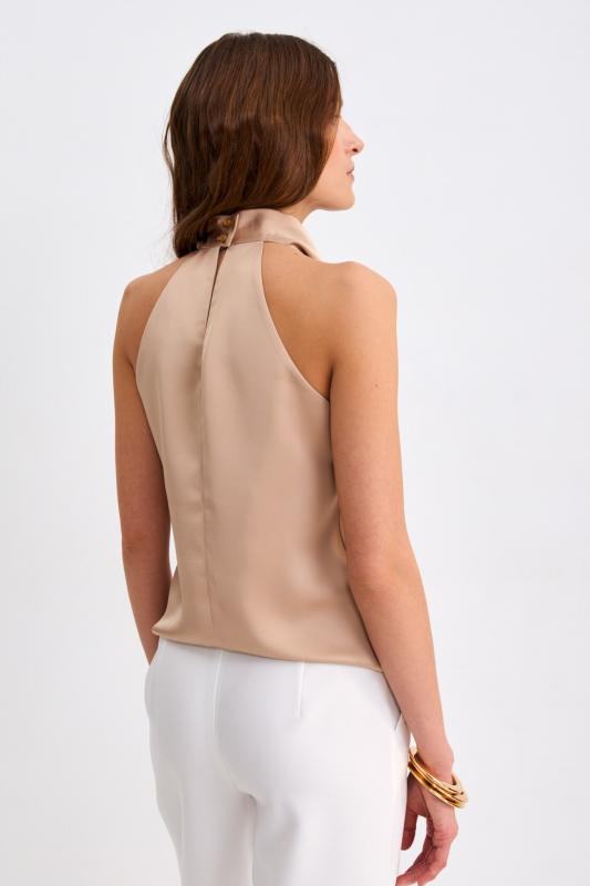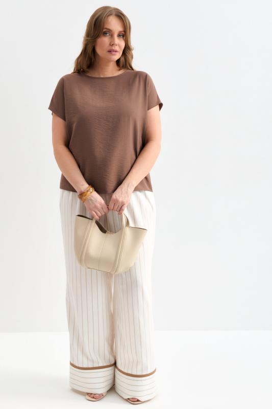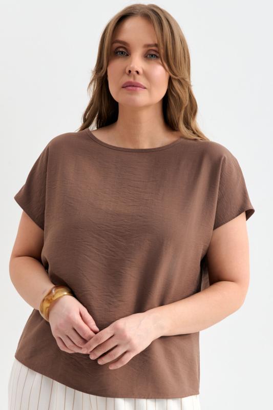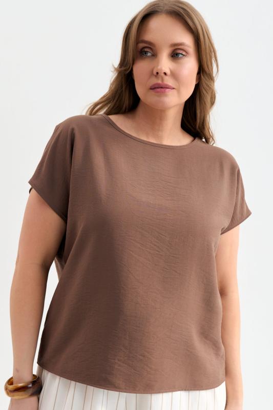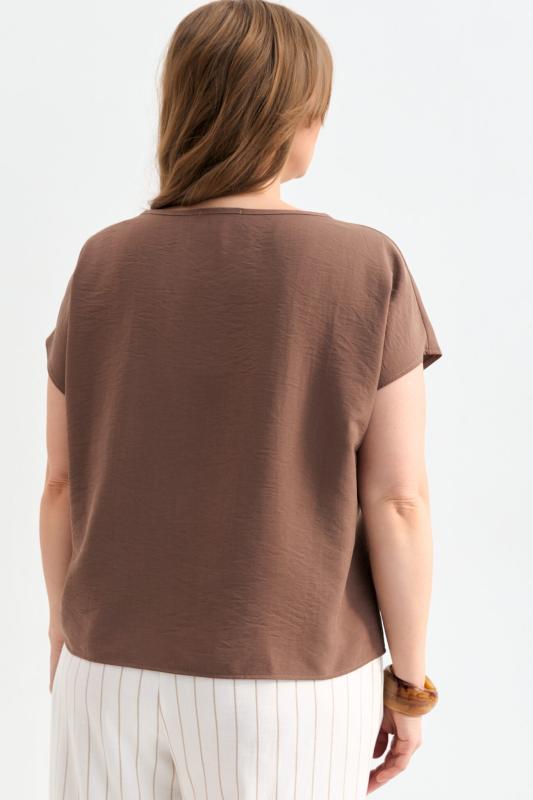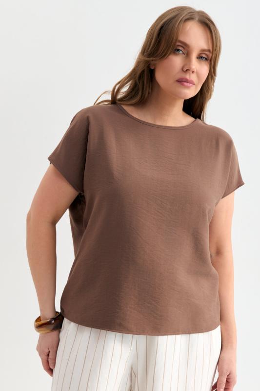 Блуза из лиоцелла в цвете мокко. Модель прямого силуэта с цельнокроенным рукавом.