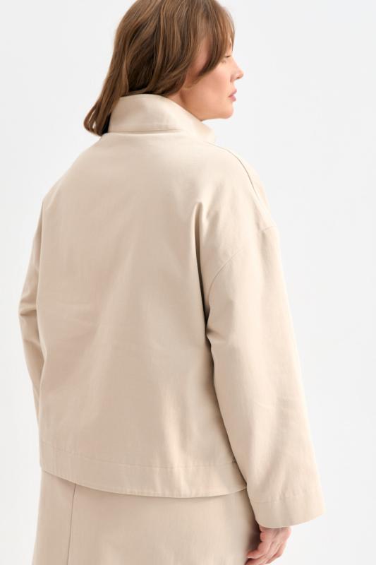 Жакет-бомбер из мягкого джинсового полотна с бархатистым финишем. Бомбер свободного силуэта с наклонными карманами и воротником стойкой. Застежка на металлическую молнию.
