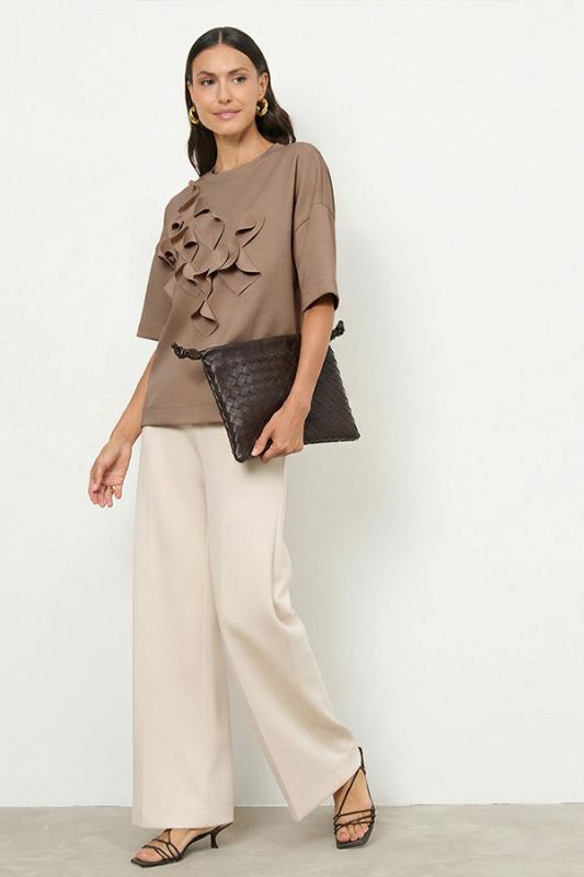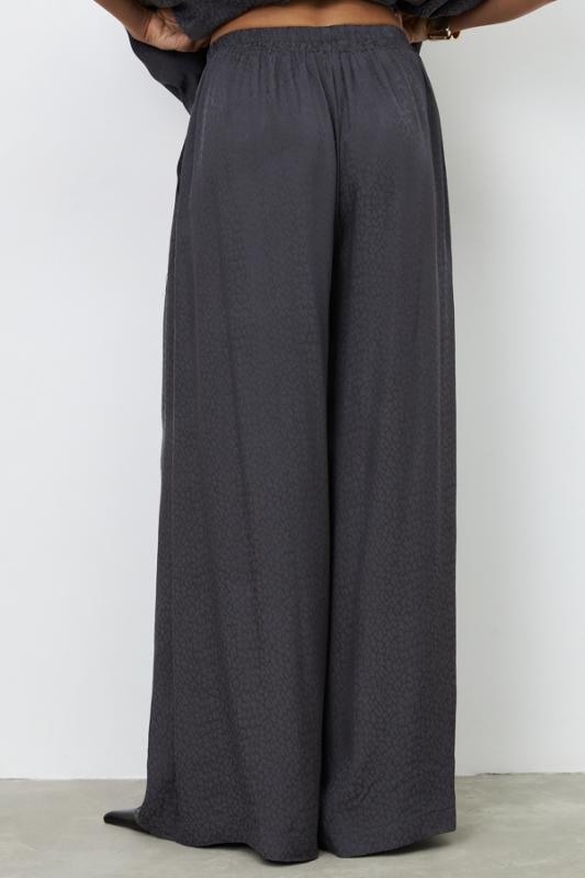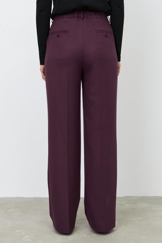 Брюки из вискозной ткани свободного силуэта. Пояс с эластичной резиной, в боковых швах карманы.