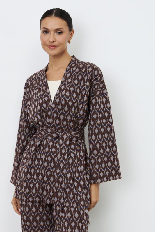 Кардиган из эластичного полотна. Свободный силуэт с притачной планкой. Втачной широкий рукав в спущенную пройму. В комплекте пояс, позволяющий создавать приталенный силуэт.