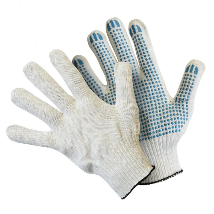 Вязаные перчатки с точечным ПВХ напылением на ладонной части являются самым распоространенным средством защиты рук при проведении строительных, садовых, сборочных и других видов работ. Плотная вязка и смешанный состав пряжи повышают износостойкость печаток и продлевают срок их службы. Точечное ПВХ покрытие обладает антискользящими свойствами, что обеспечивает хорошее сцепелние пальцев рук с предметами.