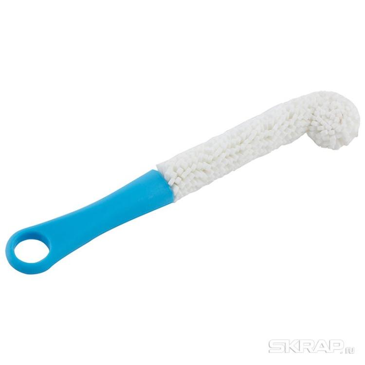 Щётка для мытья бокалов, ваз. Эргономичная ручка с отверстием, при необходимости можно повесить её на крючок. Рабочая поверхность щётки эластична, не оставляет царапин и разводов. Щётка гнётся под любым углом, необходимым вам для мытья предмета. Может охватить любой уголок внутренней части бокала или вазы. Можно мыть в посудомоечной машине. Проста в использовании.