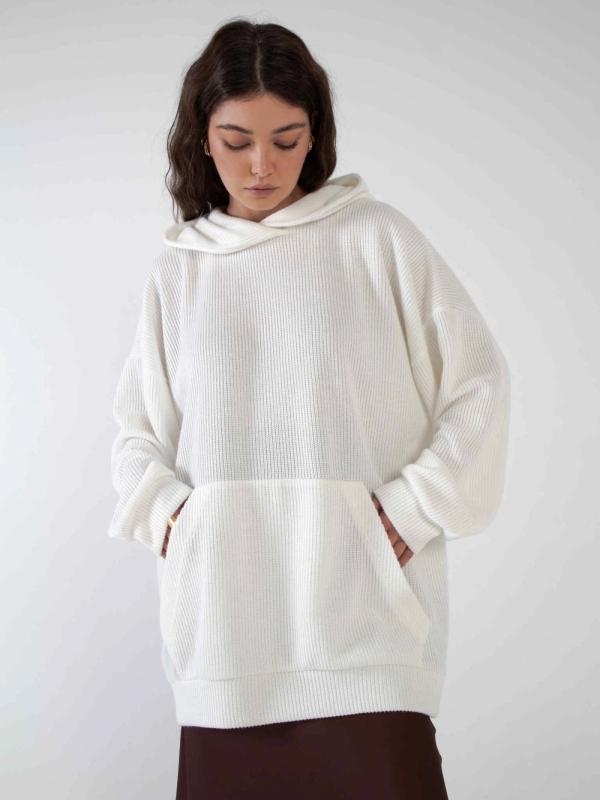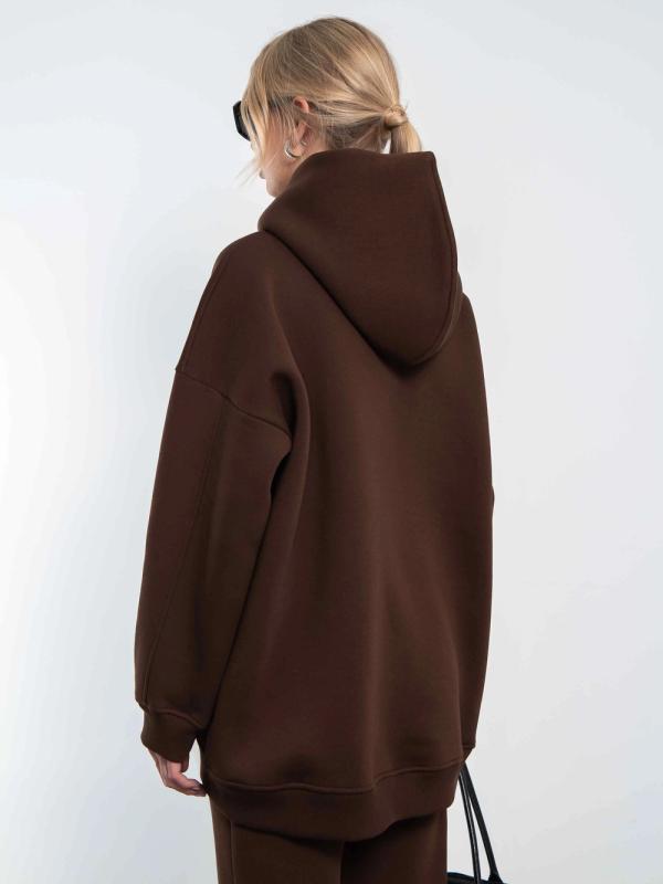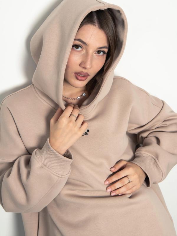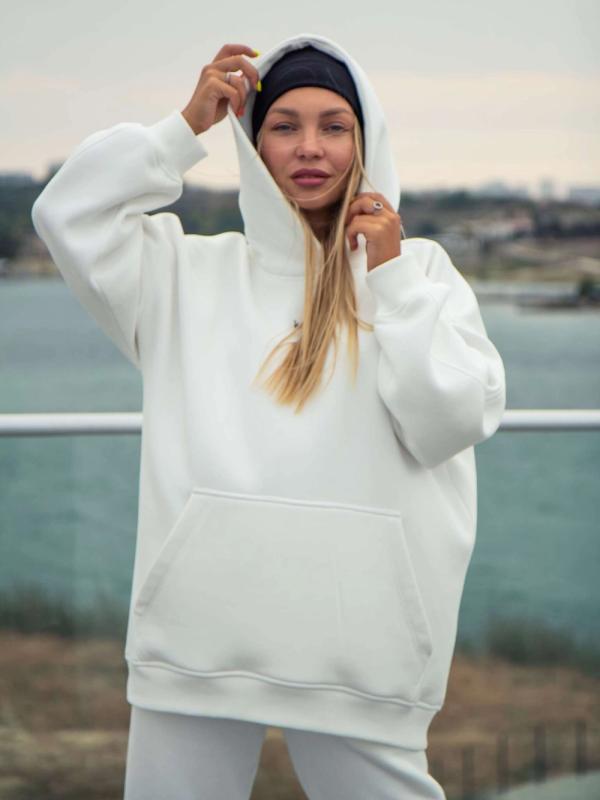 Женское оверсайз худи с начесом - идеальный выбор для комфортной повседневной носки. Изготовлено из высококачественного мягкого материала, который обеспечивает тепло и уют в прохладные дни. Свободный крой обеспечивает свободу движений, а начес внутри добавляет дополнительный уровень тепла. Большой добный капюшон защищает от ветра. Этот стильный и удобный худи станет незаменимым элементом гардероба для создания уютного и модного образа.