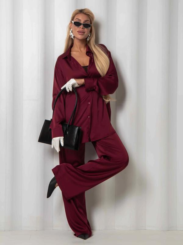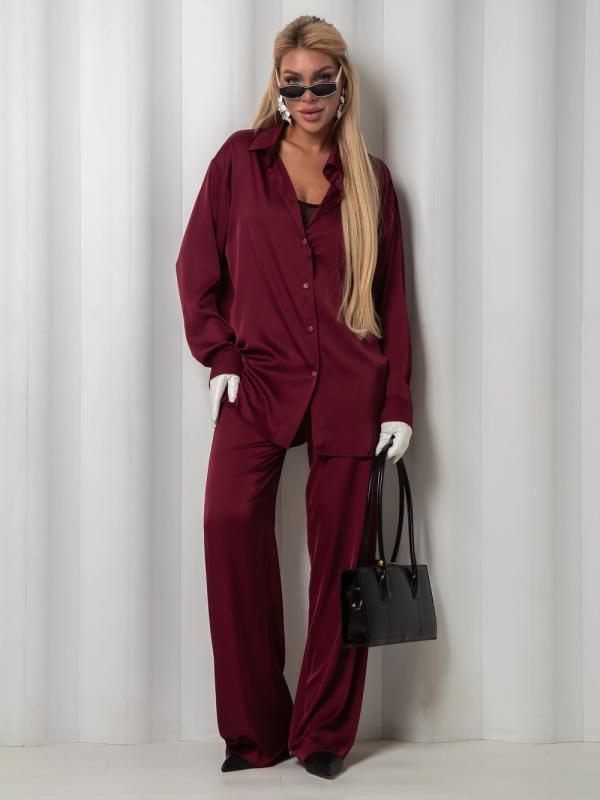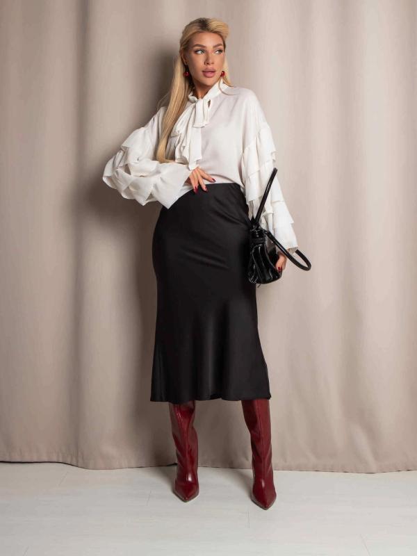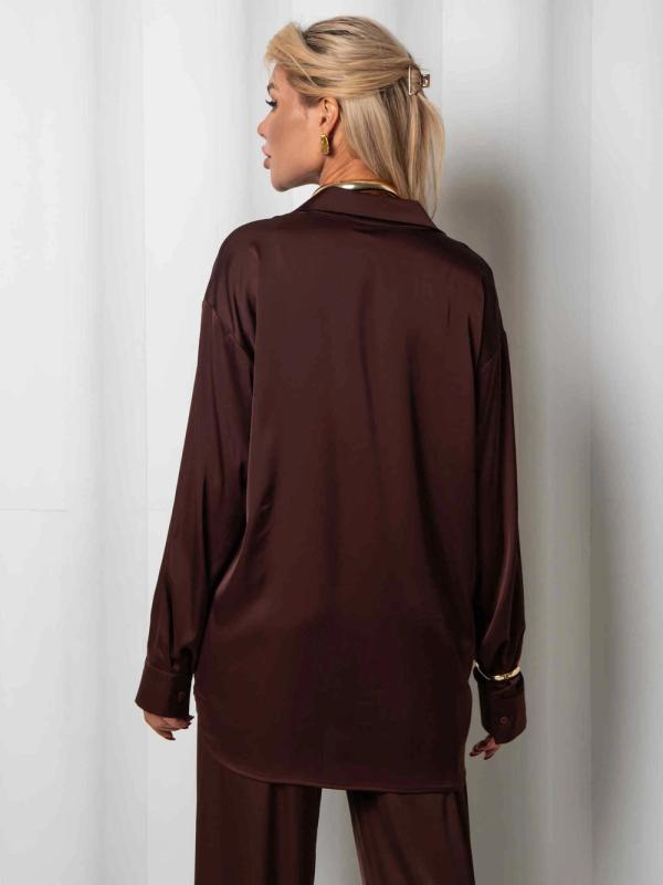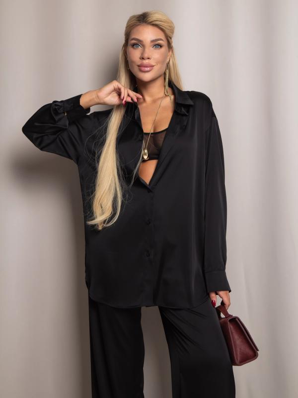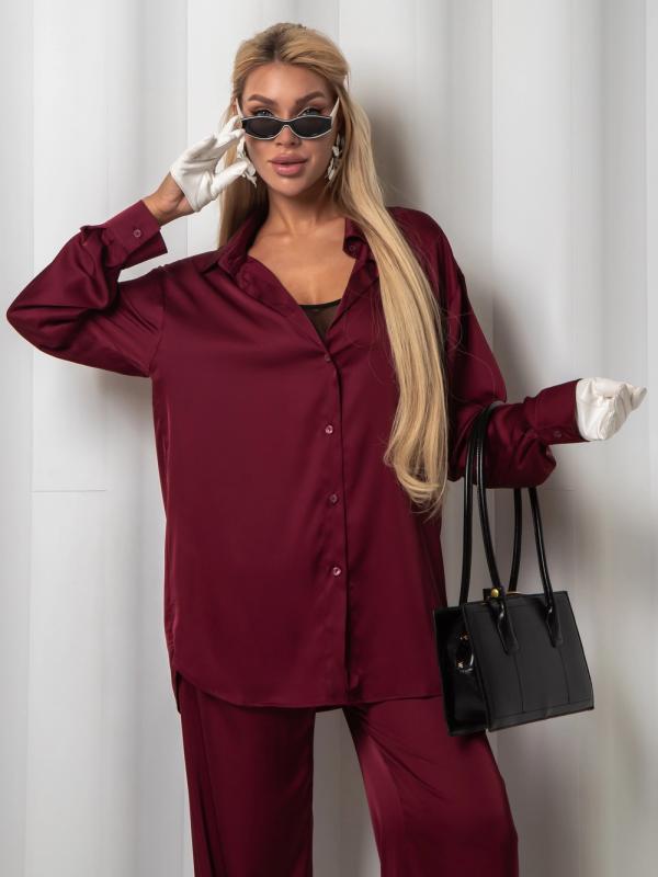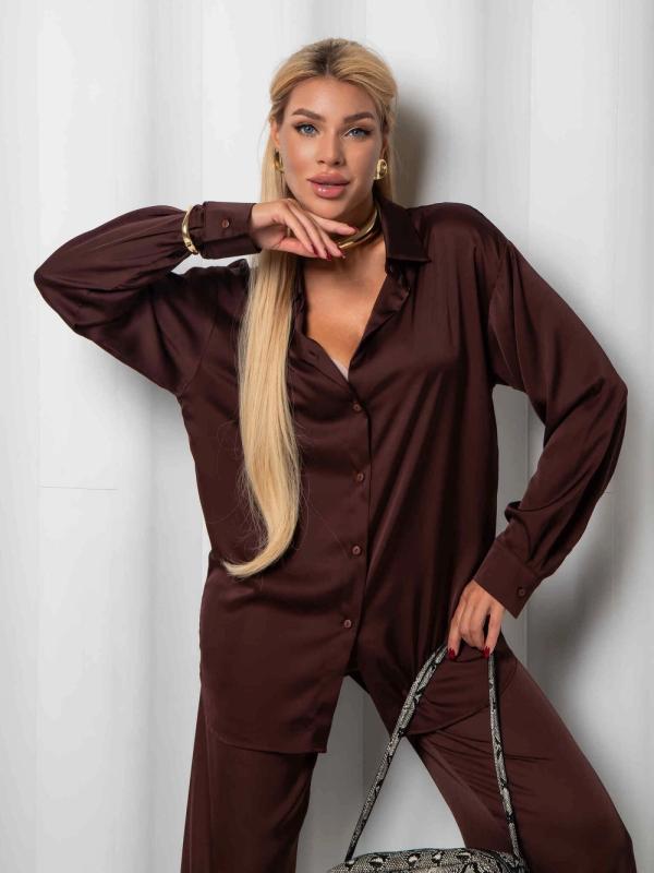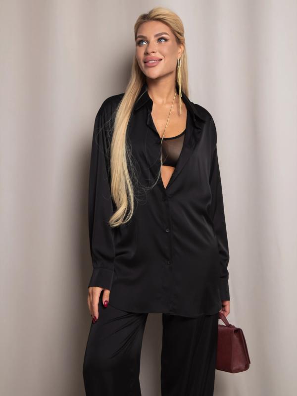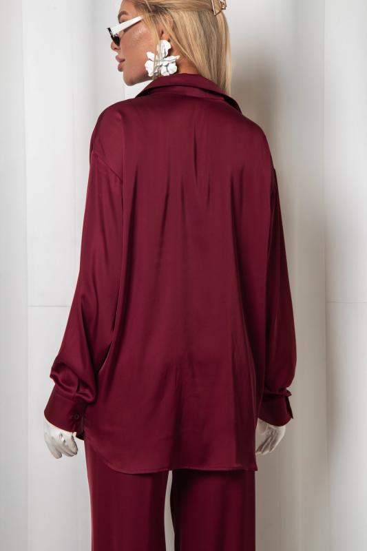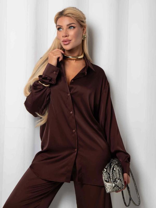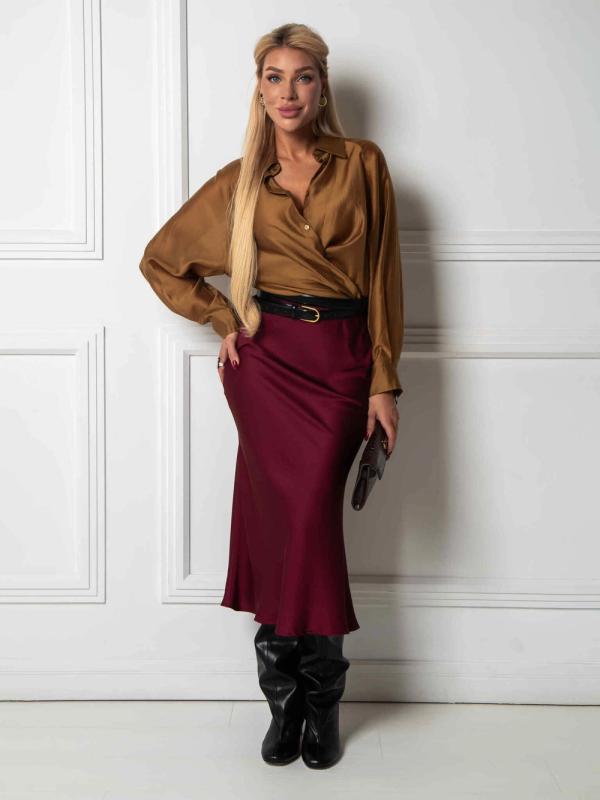 Рубашка из дубайского шелка со спущенной линией плеча, широкими манжетами на пуговицах. Идеально сочетается с юбкой или брюками из нашей коллекции. Выполнена в трех оттенках: - роскошный черный - элегантный бордовый - трендовый горький шоколад.