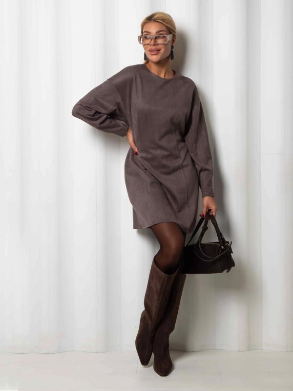 Платье силуэта тюльпан - это олицетворение утонченности и изысканности, воплощенное в минималистичном дизайне. Изготовленное из эко замши на основе трикотажа, оно нежно окутывает фигуру, подчеркивая женственность и грацию. Параметры модели на фото (ОГ-ОТ-ОБ)