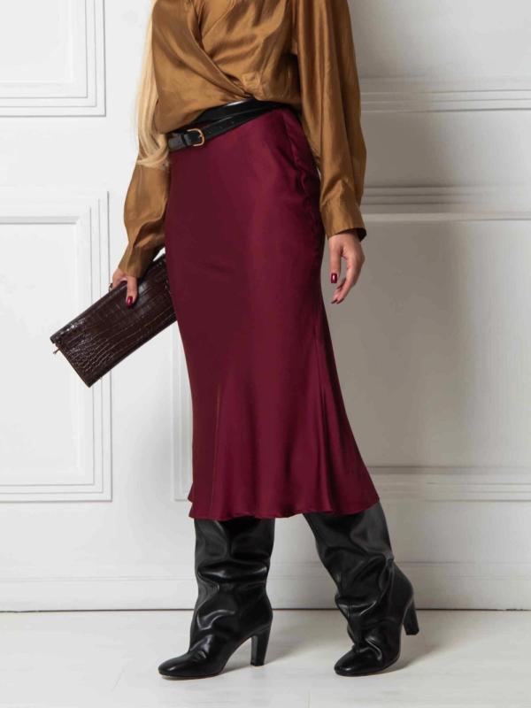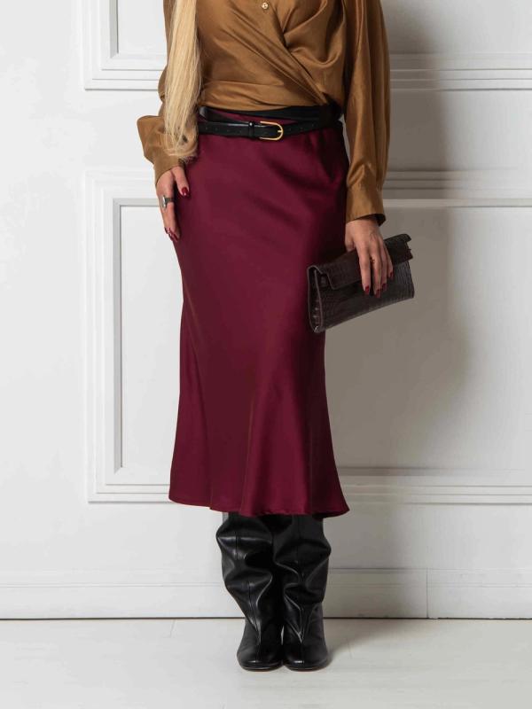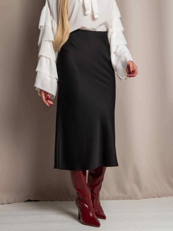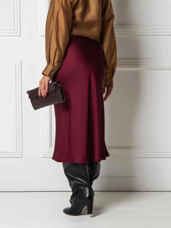 Юбка миди А- силуэта из дубайского шелка с потайным эластичным поясом, легким глянцевым блеском. Юбка хороша в комплектах разного стиля и украшает любой тип фигуры.
