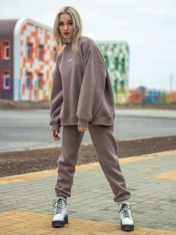 Брюки джоггеры женские коричневый с начесом