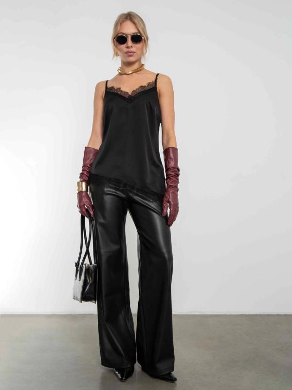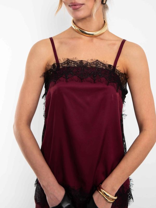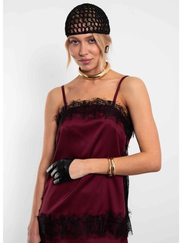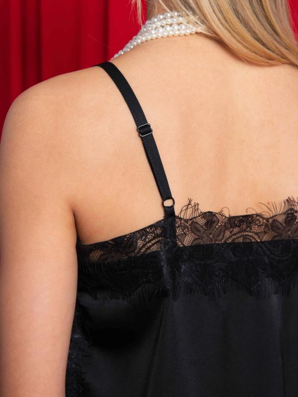 Топ в бельевом стиле на тонких бретелях с кружевом, сшит из дубайского шелка в паре с французским кружевом. Топ акцентирует внимание на комфорте и легкости. Дубайский шелк создает ощущение нежности и романтики. Бельевой стиль можно сочетать с другими направлениями моды, например, с уличным стилем или классикой. Например, топ можно носить под пиджаком с джинсами и грубой обувью. Параметры модели на фото (ОГ-ОТ-ОБ)