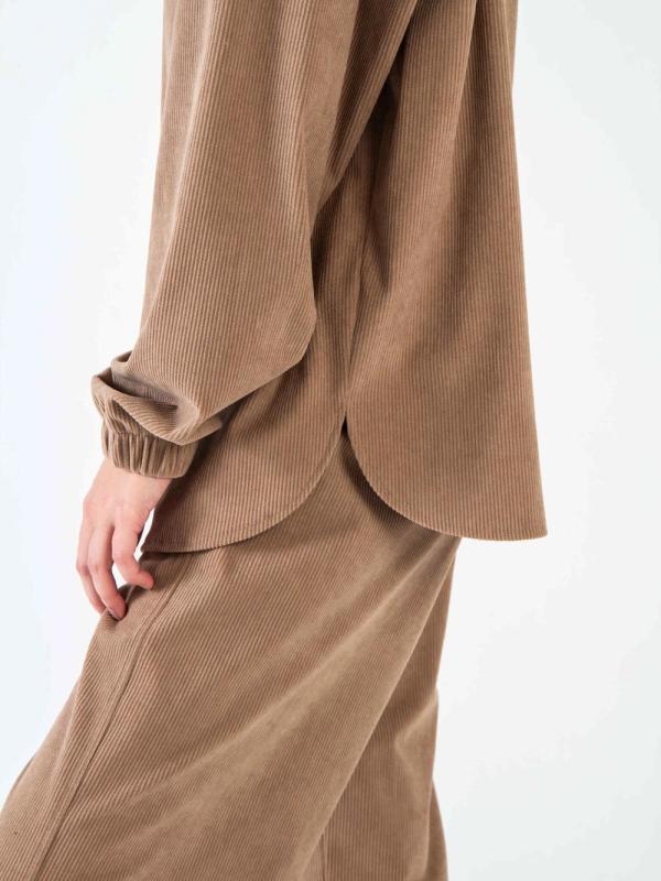Рубашка из дубайского шелка со спущенной линией плеча, широкими манжетами на пуговицах. Идеально сочетается с юбкой или брюками из нашей коллекции.