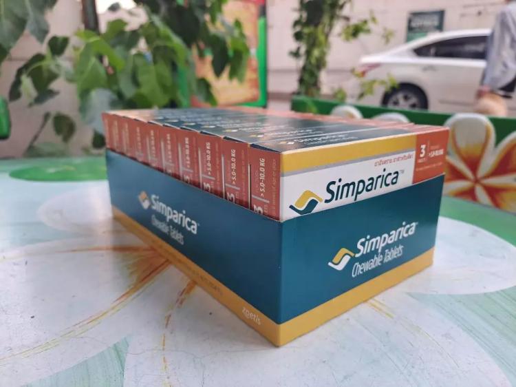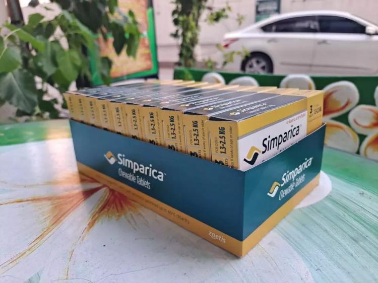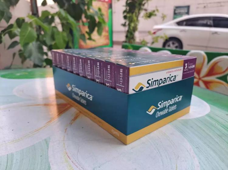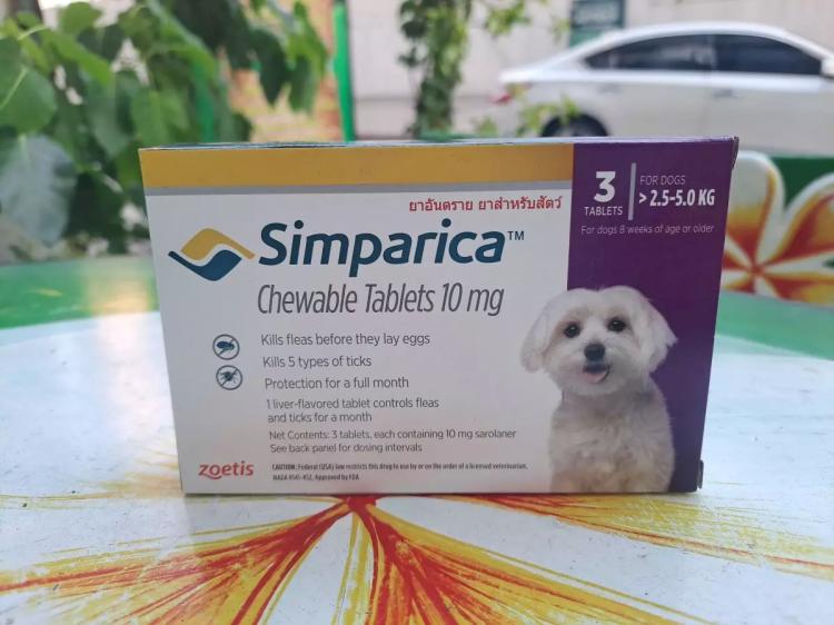 Таблетки симпарика содержат 10 мг сароланера, что подходит для собак от 2,5 до 5 кг.