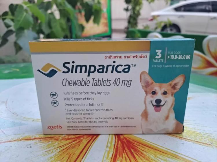 Таблетки симпарика содержат 40 мг сароланера, что подходит для крупных собак от 10 до 20 кг.